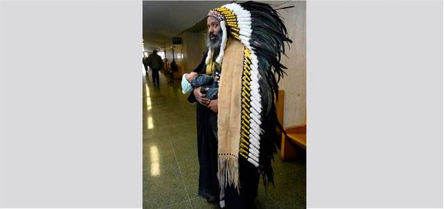 حضر أميركي جلسة ابنه في محكمة منهاتن بمدينة نيويورك وهو يرتدي زياً تقليدياً غريباً. وادعى الرجل البالغ من العمر 42 عاماً، أنه زعيم في قبيلة «واشيتو» مرتدياً لباس الهنود الحمر.