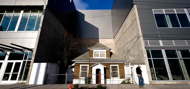 على الرغم من العرض المغري الذي قُدم لها، رفضت أميركية بيع منزلها الذي يحيط به مركز تجاري كبير ومجمع للياقة البدنية. وتعود قصة منزلها إلى أوائل القرن الماضي، إذ بني في مدينة سياتل، غرب الولايات المتحدة، في 1900. وقبل سنوات عرض عليها مقاول شراء المنزل لتكون أرضه جزءاً من مشروع تجاري كبير، مقابل مبلغ مغرٍ. وجاء جواب السيدة، إيديث مايسفيلد، بالرفض المطلق، وتجاهلت العرض والمقترحات التي قدمها المقاول الثري. ورفع المقاول السعر إلى أن وصل مليون دولار، ولم يغير ذلك شيئاً بالنسبة للسيدة مايسفيلد، ولم يزدها إلا إصراراً على موقفها الرافض للبيع. وصرحت لإحدى الصحف المحلية قائلة: «لن أتحرك من مكاني، ولست بحاجة إلى المال، وهذا المبلغ لا يعني لي شيئاً».