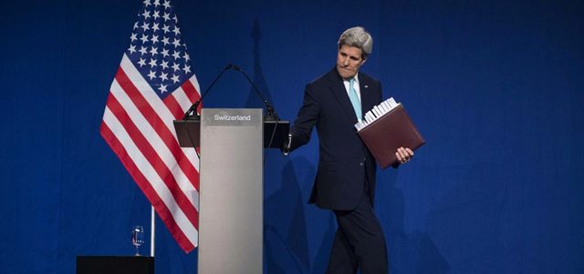 وزير الخارجية الأميركي جون كيري بعد إعلان الاتفاق. أ.ف.ب