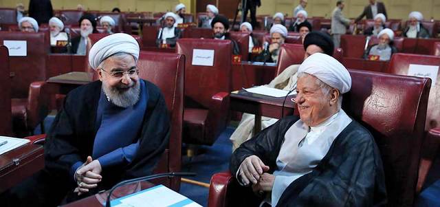 الرئيس الإيراني حسن روحاني (يسار) مع الرئيس السابق أكبر هاشمي رفسنجاني. رويترز