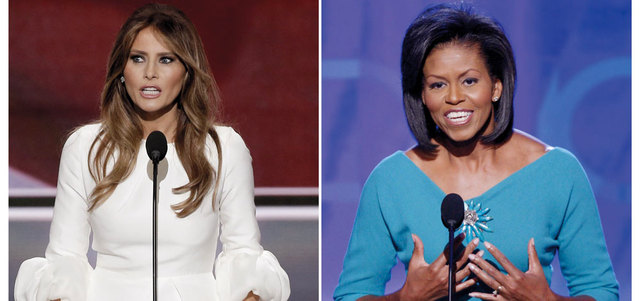 تصدى الخبراء السياسيون لخطاب ميلينيا ترامب، زوجة المرشح الجمهوري للرئاسة الأميركية، دونالد ترامب، خلال مؤتمر الحزب الجمهوري، الذي بدا شبيهاً بخطاب كانت قد ألقته السيدة الأولى الأميركية، ميشيل أوباما، في مؤتمر الحزب الديمقراطي عام 2008. ومن الواضح أن موضوع السرقة غير صحيح هنا، لكن في هذه الحالة ثمة جانب برّاق، إذ يظهر تقليد السيدة ترامب للسيدة ميشيل أوباما، أن الحزبين ربما يتفقان على شيء ما.