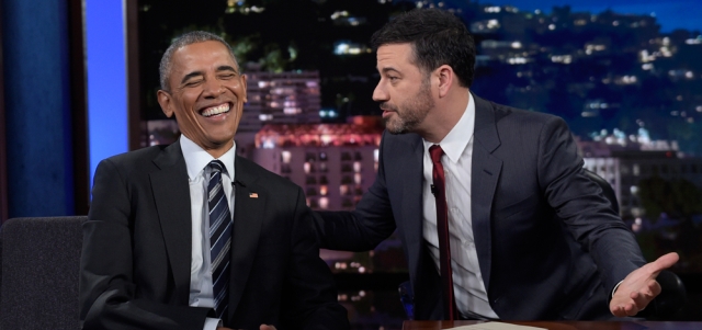 وظهر الرئيس على برنامج جيمي كيميل خلال زيارته التي استمرت ثلاثة أيام إلى ولاية نيفادا وكاليفورنيا، وتندر أوباما مع كيميل عن كونه سيبقى في واشنطن، بعد انتهاء فترته الرئاسية، وهو الخيار الذي اتخذه أوباما إلى حين انتهاء ابنته شاسا من دراستها في المدرسة الثانوية. واعترف الرئيس بأنه كان يواصل الضحك أثناء المناظرة الرئاسية الأخيرة.
