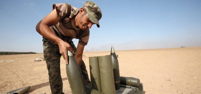 عنصر من «الحشد الشعبي» يعد قذائف لضرب «داعش» جنوب الموصل. أ.ف.ب
