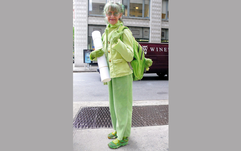 على مدى السنوات الـ20 الماضية، اختارت إليزابيث روزنتال، المعروفة أيضاً باسم «إليزابيث سويتهارت»، في منطقة بروكلين بمدينة نيويورك، أن تلبس اللون الأخضر من رأسها حتى أخمص قدميها. وبالنسبة إليها، الأخضر هو «أسعد لون وأكثر إيجابية»، حتى أنها لا تستطيع أن تتخيل ارتداء أي لون آخر.