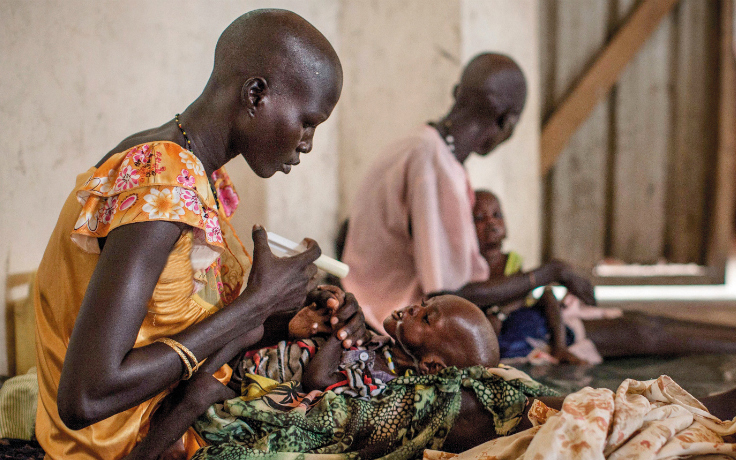 ويقول رئيس الاتصالات بشرق وجنوب إفريقيا بصندوق الطفولة العالمي (يونيسف)، جيمس الدر: «إن الكثير من السكان فروا من القتال واضطروا لأكل أي شيء يجدونه أمامهم من العشب، وحتى بصيلات النباتات». يضاف إلى ذلك أن ما يصل إلى مليون طفل يعانون سوء التغذية. ويؤكد ممثل «يونيسف» في جنوب السودان، جيريمي هوبكنز، أنه «إذا لم نصل اليهم بسرعة سيموت منهم الكثير». العام الماضي استطاع «يونيسف» أن يعالج وضع 148 ألف طفل مصابين بسوء التغذية، وهو رقم يزيد بـ 50% على العدد الذي تم التعامل معه عام 2015. ولاية الوحدة هي الأكثر تأثراً من بقية مناطق البلاد بسبب القتال الدائر هناك.