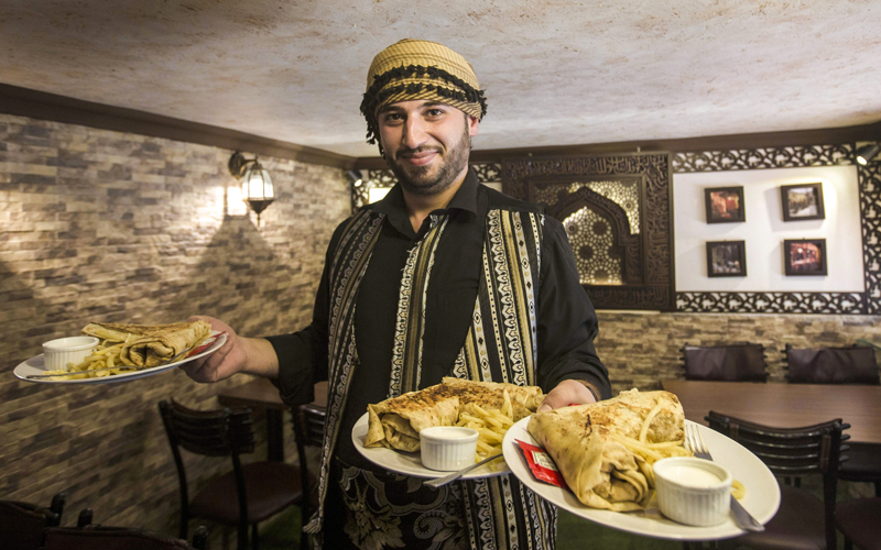 أنس قاطرجي أنشأ في غزة مطعماً مماثلاً للذي خسره في حلب. أ.ف.ب