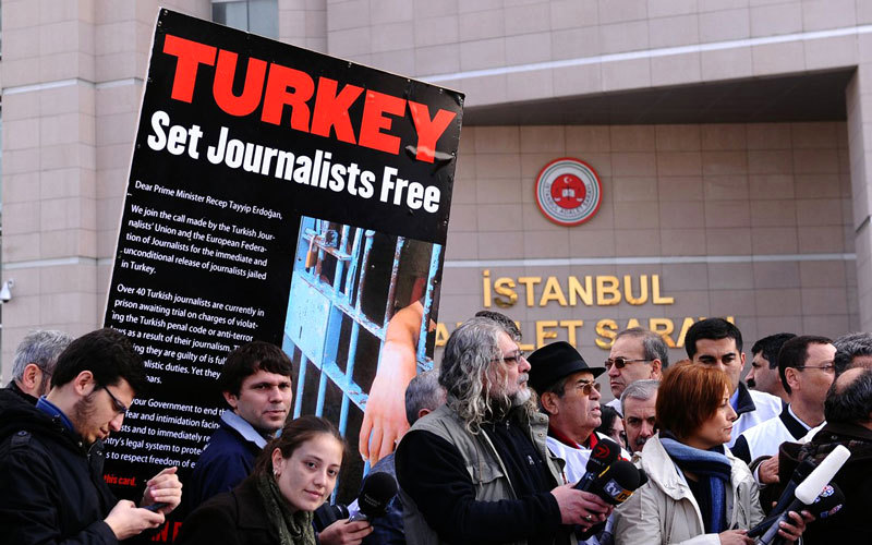 تظاهرة في تركيا تطالب بإطلاق سراح صحافيين. أرشيفية