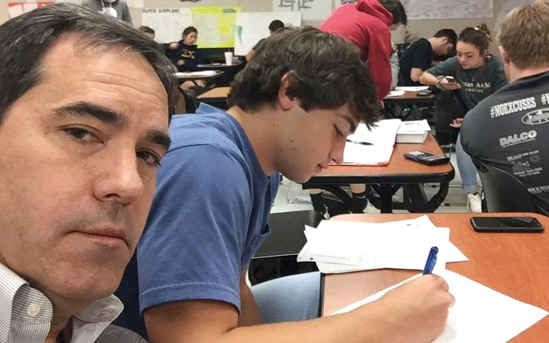 اضطر والد طالب في ولاية تكساس للجلوس إلى جانب ابنه في امتحان الفيزياء، يوم الجمعة، بعد تلقي سلسلة رسائل من المُدرِّس حول سلوكه السيئ، إذ وصل إلى والدي براد هوارد عدد من التقارير من المعلم، تفيد بأنه كان يسيء التصرف في فصله كل صباح. وفي نهاية المطاف، تم تحذير والده من أن تلقيه مكالمة أخرى عن سلوك ابنه، تعني أنه سيقوم بزيارة خاصة للجلوس بجانبه في الصف المدرسي.