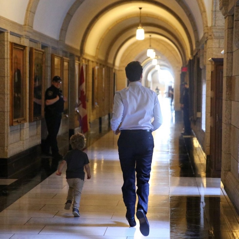 اصطحب رئيس وزراء كندا، جستن ترودو، ابنه البالغ من العمر ثلاث سنوات، هادريان، لمكتبه الأربعاء الماضي، وعلى الرغم من جدول الأعمال اليومي المزدحم لرئيس الوزراء، مثله مثل بقية زعماء العالم، فإنه وجد متسعا من الوقت لقضاء فترة ممتعة مع ابنه في المكتب الرئاسي يسابقه ويلعب معه.