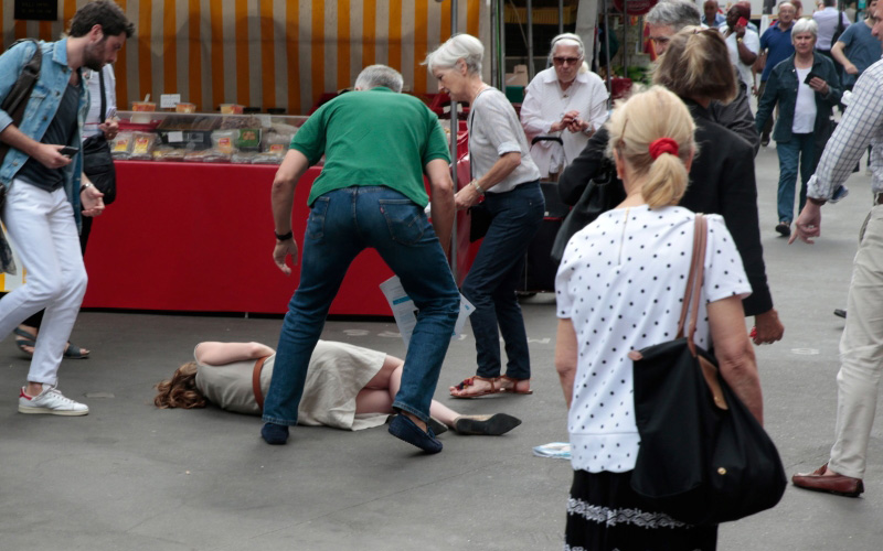 بالصور.. خمسيني يطرح "وزيرة" فرنسية أرضا في سوق بباريس