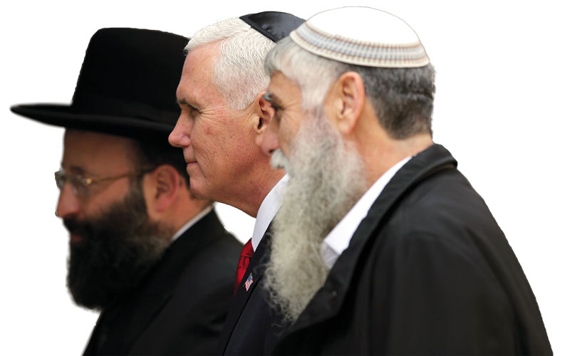 لكن إدارة ترامب، ومن يدعمها من الإنجيليين، لم يعطوا بالضرورة الأولوية لعملية السلام التقليدية، كما أظهرت الضغوط على العلاقات الخارجية الأميركية خلال زيارة بنس إلى الشرق الأوسط. وخلال أولى محطتَي نائب الرئيس، استمع إلى «قلق الرئيس عبدالفتاح السيسي العميق بشأن نقل السفارة»، وفي الأردن أبلغه الملك عبدالله أن الأميركيين بحاجة إلى إعادة بناء «الثقة»، مضيفاً أن النزاع الإسرائيلي - الفلسطيني الملتهب يشكل «مصدراً رئيساً محتملاً لعدم الاستقرار».