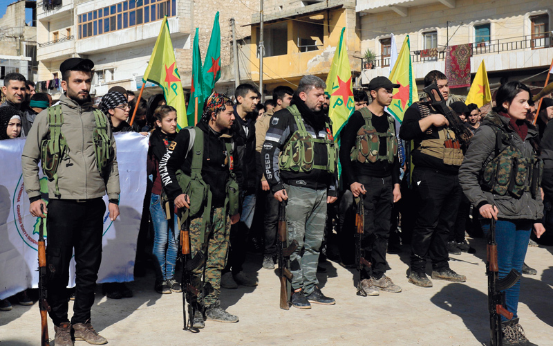 أكراد يجنّدون مدنيين لقتال تركيا في منطقة عفرين. أ.ف.ب