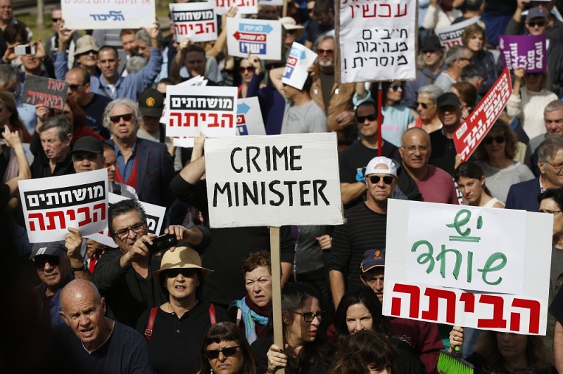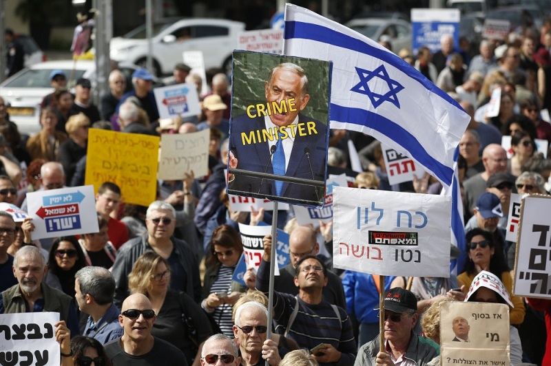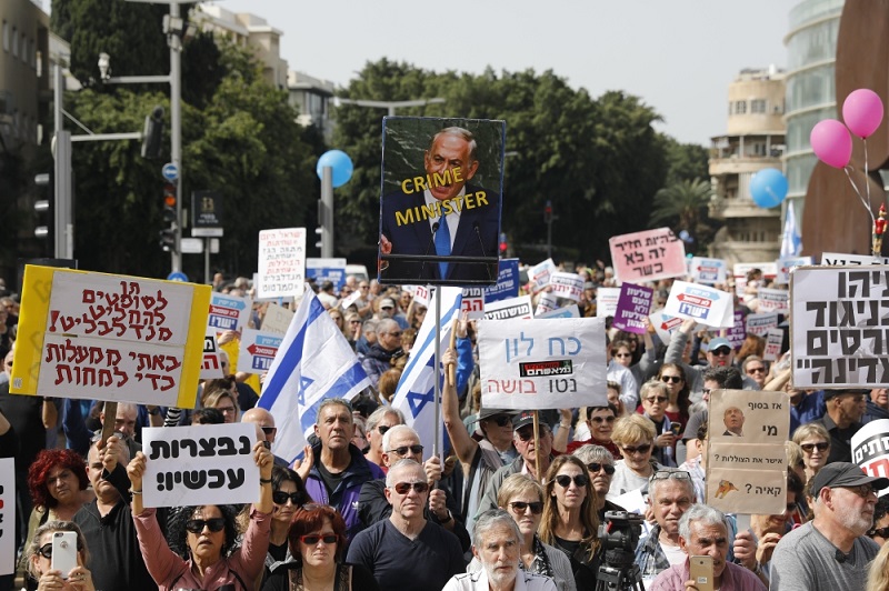 تظاهر زهاء 2000 شخص في تل أبيب،اليوم، مطالبين باستقالة رئيس الوزراء بنيامين نتنياهو، في أول احتجاج حاشد بعد أن أوصت الشرطة بتوجيه الاتهام له بالرشوة في قضيتي فساد.