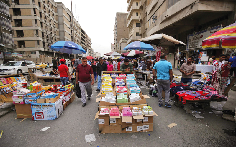 عراقيون يعرضون سلعهم وسط بغداد . أ.ف.ب