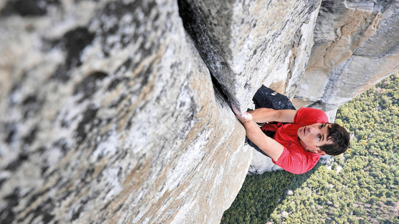 قد لا يكون أحدنا سعيداً بإنجاز حلمه المتهور، الأمر مختلف بالنسبة لأول شخص يمارس مهنة تخطي الموت من خلال تسلق جبل أفقي، يبلغ طوله 915 متراً، من دون حبل. إنه أليكس هونولد الذي انتظر ثماني سنوات لتحقيق حلمه، وسنة ونصف السنة من الاستعداد، ومحاولة فاشلة واحدة. ويظهر هونولد (33 عاماً)، وهو يتسلق الجبل الصخري معتمداً على قوة يديه وبراعة رجليه، في غياب أي من المعدات التي يستخدمها المتسلقون في مثل هذه المهام الصعبة. الوصول إلى قمة التشكيل الصخري الشهير في منتزه «يوسمايت» بولاية كاليفورنيا ليس أمراً سهلاً.