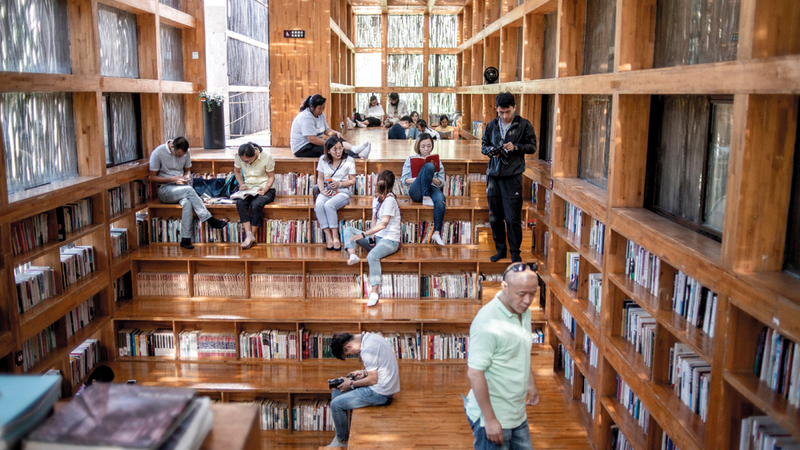 وسط ضواحي بكين الريفية، وفي قلب وادٍ صغير محاط بقمم صخرية، تستقطب مكتبة خشبية المئات من الزوار. وفي نهاية كل أسبوع، يتجول عشاق القراءة في المبنى الواقع في قرية تشياو جيجي، محاطين بأشجار الكستناء، والجوز، والخوخ المورقة. وبنيت مكتبة «ليوان» على هيكل من الفولاذ والزجاج. لكن واجهات المبنى مغطاة بفروع وأغصان الأشجار، وهي مرتبة بشكل عمودي.