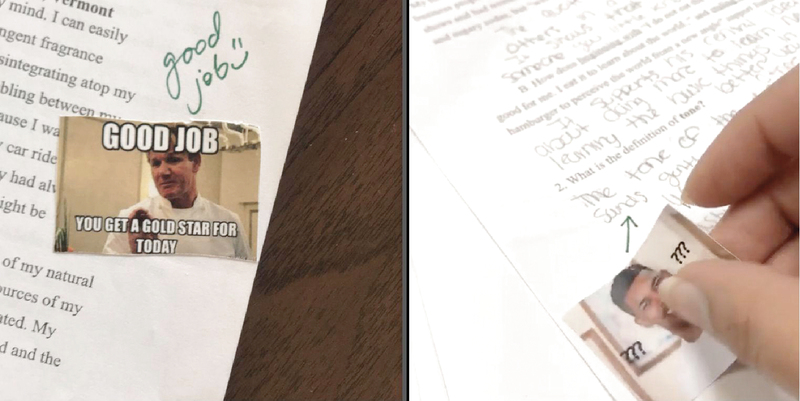 وتقول المعلمة البالغة من العمر 27 عاماً، إن الملصقات كانت فكرة تدور في رأسها منذ فترة طويلة «كنت أعطي درجات لطلابي وكنت محبطة حقاً، وكنت أتمنى أن يرى طلابي حال وجهي أثناء التصحيح، لأن الإجابات التي يكتبونها كانت خاطئة بشكل لا يصدق»، متابعة «لذلك قلت لنفسي أطبع بعض الرسوم وألصقها على الإجابات».