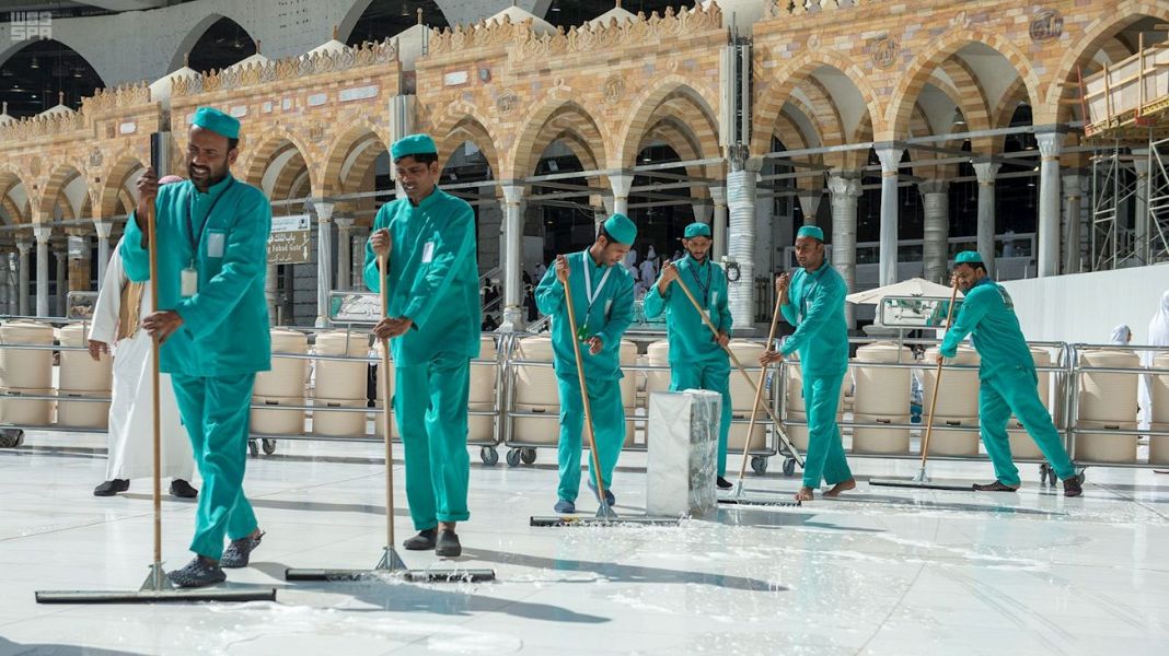 بالصور.. لأول مرة 85 شاباً سعودياً يعملون في نظافة المسجد الحرام