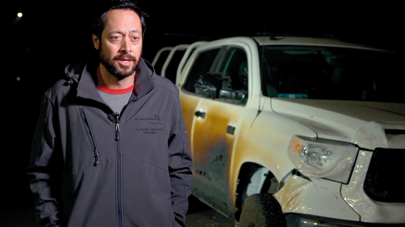يرفض الممرض، ألين بيرس، أن يُطلق عليه لقب «بطل»، لأنه كان ضمن جهد جماعي لأشخاص يقومون بعملهم. كانت سيارته الكبيرة، من نوع تويوتا تُندرا، التي استخدمها في عملية الإخلاء، محترقة بشدة، ما يدل على مدى قربها من النار. كما يقول ألين، الذي وجد الدعم في مجتمعه، «لقد قضيت الكثير من الوقت مع فريقي الذي كان عالقاً معي هناك»، مضيفاً «إنهم يفهمون حقاً ما مررنا به».