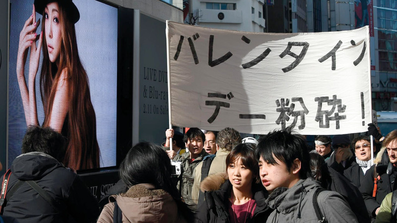 يابانيون يتظاهرون ضد «عيد الحب» رغم البرد الشديد