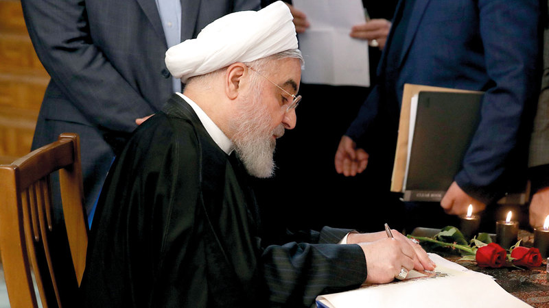 روحاني يوقّع على سجل يضم أسماء ضحايا الطائرة الأوكرانية. أ.ف.ب