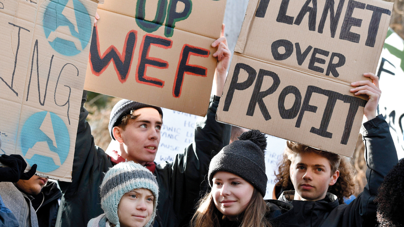 أصبح الرئيس الأميركي، دونالد ترامب، الجانب الشرير في قصة تغيّر المناخ، ففي المنتدى الاقتصادي العالمي المنعقد في دافوس الأسبوع الماضي، لعب الرئيس الأميركي الدور كاملاً بإتقان حتى نهايته، وهاجم نشطاء المناخ واصفاً إياهم بـ«رسل الويل والثبور»، بينما راقبت الناشطة المراهقة، غريتا ثونبيرغ، المشهد من بين الحضور.