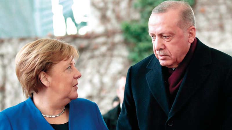 وعندما صعدت أنقرة نزاعها مع اليونان على مخزون الغاز في البحر الأبيض المتوسط، توسطت ألمانيا بين تركيا ونظيرتيها في الاتحاد الأوروبي اليونان وقبرص. ويعتبر هذا التوسط حدثاً نادراً لأن دولة في الاتحاد الأوربي تتوسط لدى دولتين عضوتين، لحل نزاع مع دولة غير عضو. وخلال الاشتباكات الأخيرة في ناغورنو كاراباخ، كانت إدانة برلين باهتة حيال موقف أردوغان الاستفزازي. وفي الواقع خلقت ميركل ما يشبه المظلة الدبلوماسية لأردوغان داخل الاتحاد الأوروبي، على أمل أن تحصل في النهاية على الرئاسة المشتركة لمجموعة مينسك. حتى عندما غزا أردوغان شمال سورية، لم تفعل ميركل شيئاً ملموساً لمنعه من مواصلة ذلك. وفي الواقع، إنها أيدت هذه الخطوة ضمنياً، وبررتها على أنها وسيلة للحد من تدفق اللاجئين إلى أوروبا. وكان منطقها أن مثل هذا التدفق لن يحدث إذا استطاع أردوغان السيطرة على مناطق ما يسمى «الملاذ الآمن» للسوريين.