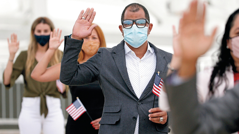 اختبار المواطنة الجديد واحد من عدد من المحاولات في ظل إدارة ترامب، ليس فقط لوقف الهجرة غير المصرح بها، لكن أيضاً لتقييد الهجرة القانونية، وجعلت الإدارة من الصعب على الأشخاص الحصول على اللجوء، وزادت تكاليف التقدم للحصول على الجنسية، وتحت غطاء جائحة فيروس «كورونا»، علقت إصدار البطاقات الخضراء للمهاجرين الباحثين عن عمل مؤقت في البلاد، وإذا أخذنا في الاعتبار هذه التحركات فإنها تعني الارتداد عما هو متعارف عليه تاريخياً من دعم الحزبين لتجنيس المهاجرين الذين عاشوا وعملوا في الولايات المتحدة واغتنموا الفرصة ليصبحوا مواطنين.