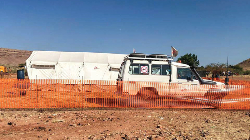 وبالنسبة لمنظمة «أطباء بلا حدود»، فقد أرسلت عمال رعاية صحية على طول نهر تيكيزي وإلى نقاط أخرى عبَر منها اللاجئون إلى السودان كي تتمكن من فحص صحة الجميع ووضعهم الغذائي. أرسلت جرارات لنقل الماء من النهر، وتعقيمه بالكلور، وتوزيعه في القرية، وبدأت في دعم مرفق صحي صغير في السوق الرئيسة، حيث يقدم طاقم المنظمة ووزارة الصحة السودانية الاستشارات العامة، وخدمات الرعاية الصحية الأخرى للاجئين والمجتمع المضيف.