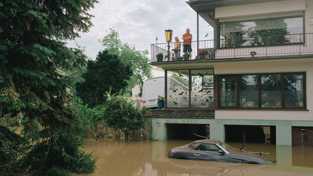 هطل أكثر من سبع بوصات من الأمطار على أجزاء من ولايات راينلاند بالاتينات ونورد راين فستفالن غرب ألمانيا، في يوليو، أي ما يقرب من ضعف معدل هطول الأمطار المعتاد المتوقع لشهر يوليو بأكمله، ما تسبب في خروج الأنهار الرئيسة من مجاريها واجتياحها بالكامل القرى والبلدات.