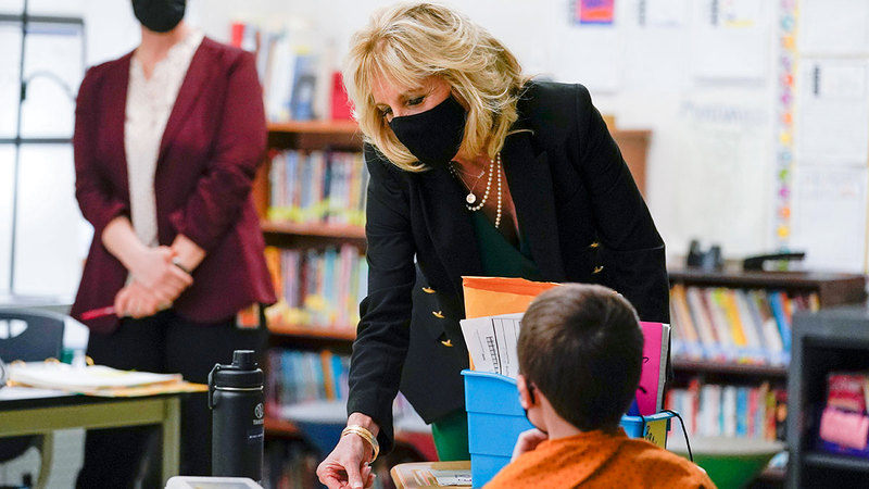 وصرحت أخيراً لمجلة «غود هاوس كيبغ» قائلة: «هناك بعض الأشياء التي لا يمكنك الاستغناء عنها، حيث إني أنتظر على أحر من الجمر العودة إلى الفصل الدراسي». وكانت السيدة الأولى حريصة على رؤية طلابها وجهاً لوجه بعد أكثر من عام من التدريس الافتراضي، بسبب الوباء الذي لايزال يمثل تحدياً لإدارة بايدن.