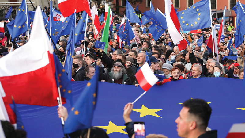 بولنديون مؤيدون للاتحاد الأوروبي يتظاهرون في وارسو. أرشيفية