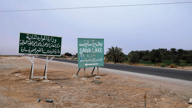 على أعتاب الصحراء في جنوب العراق، يغيب أي أثر لبحيرة ساوة، باستثناء لافتة تدعو إلى «عدم صيد الأسماك»، في موقع شكّل في الماضي موئلاً للتنوع الحيوي، لكنه استحال أرضاً قاحلة بسبب الأنشطة البشرية والتغيّر المناخي.