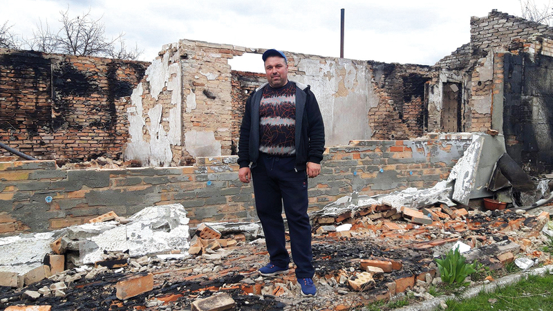 وكان الأوكراني، فلوديمير ستيخون، طفلاً في حينه، وتم إخراجه من المدينة القديمة إلى حياة جديدة، وهو الآن في سن 42 عاماً، وبات ينظر الآن إلى الجدران السوداء التي بقيت من منزله الذي بناه من الطوب في نوفي لاديجتشي عندما تزوج، ولكن عندما دخل الجيش الروسي إلى البلدة اشتعلت فيه النيران، ربما نتيجة القصف.