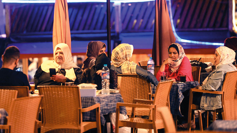 وفي مقهى آخر شمال غرب مدينة غزة، تقول (أم سعيد ساق) بينما تجلس مع صديقتها واثنتين من أخواتها: «نحاول التغلب على الضغوط بالخروج وتبادل الهموم. البلد ميتة، الناس يضحكون، لكن الجميع مدمّر نفسياً من الداخل».