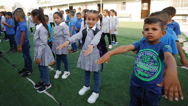 أطفال فلسطينيون في مدرسة شلال العوجة بالقرب من أريحا، وقد هددت إسرائيل بهدمها في وقت يبدأ فيه العام الدراسي الجديد.