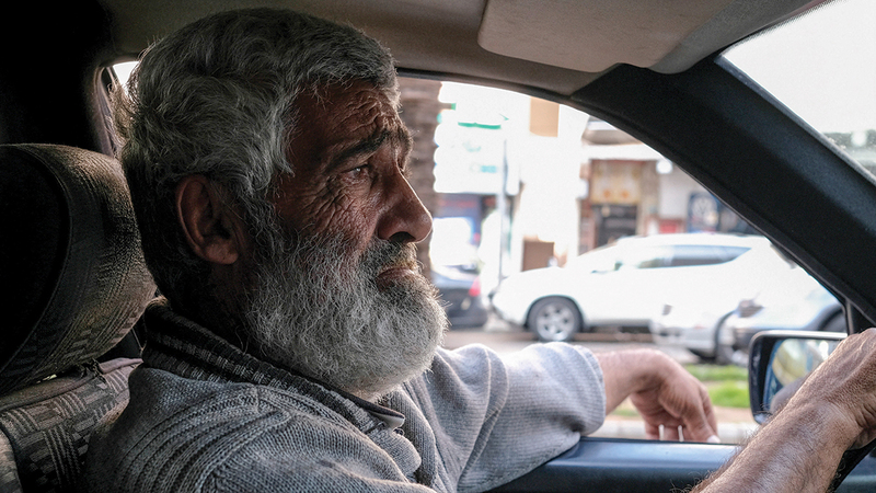 سائق التاكسي عبد ام يارات خلال مقابلة أجرتها معه وكالة «رويترز» للأنباء، بينما يقود سيارته في أحد شوارع بيروت، حيث يعاني السائقون ندرة وارتفاع أسعار الوقود.