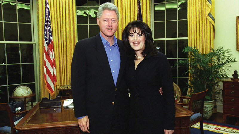 علاقة كلينتون مع متدربة البيت الأبيض لوينسكي في الفترة ما بين 1995 إلى 1997 كادت تطيح به عن منصبه.