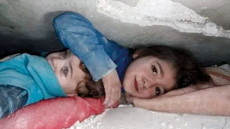 صور الأطفال الناجين، التي انتشرت على مواقع التواصل، جسّدت حجم المأساة، وتفاعل معها كل من شاهدها، لاسيما الفيديو الذي تظهر فيه طفلة تحمي شقيقها بيدها، وتطلب من المسعف أن يخرجها من تحت الأنقاض، وتعرب عن استعدادها للعمل لديه.