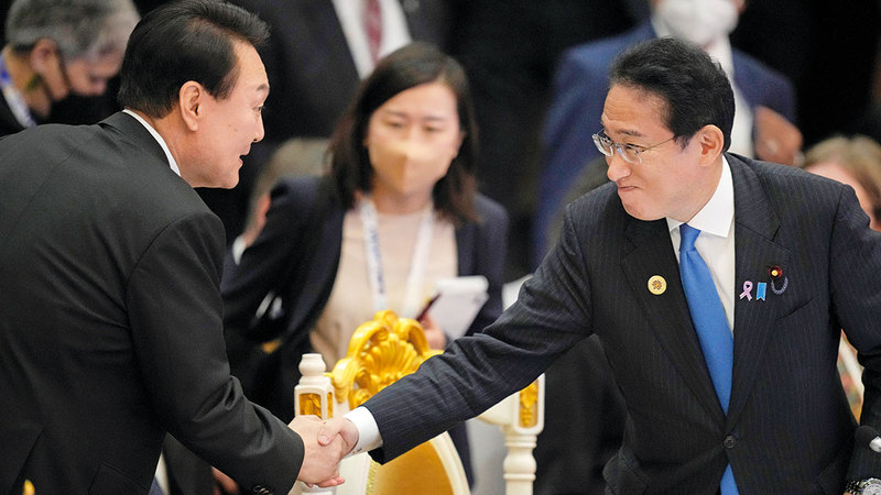 الزعيمان الياباني والكوري الجنوبي. أ.ب