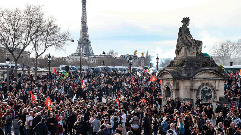 وكانت إضرابات يوم الخميس هي الأولى منذ أن نجت الحكومة من اقتراح سحب الثقة، ودفعت بالإصلاح الذي لا يحظى بشعبية كبيرة من خلال البرلمان دون تصويت. وقالت النقابات الفرنسية إن 3.5 ملايين شخص شاركوا في التظاهرات، بينما قالت الشرطة إن أكثر من مليون شخص شاركوا في التظاهرات.