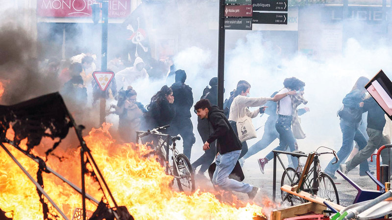 تلقى الرئيس الفرنسي إيمانويل ماكرون تحذيراً من أنه قد يواجه مصير الملك لويس السادس عشر نفسه، الذي تم قطع رأسه، حيث أدى الغضب بشأن إصلاحاته التقاعدية إلى شلل كامل في فرنسا، الخميس الماضي. ونزل مئات الآلاف من الأشخاص إلى الشوارع في جميع أنحاء البلاد، واشتبكوا مع الشرطة، وعرقلوا السفر، وأغلقوا مصافي النفط في أكثر أيام الاضطرابات فوضى، منذ بدأت التظاهرات ضد خطة الرئيس لرفع سن التقاعد من 62 إلى 64 سنة في وقت سابق من هذا العام.