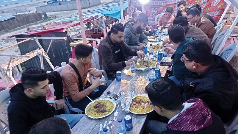 المواطن أبووائل عجور قدم إلى «كورنيش غزة» في منطقة (دوار الـ17)، برفقة أقاربه من الشباب، لقضاء وقت الإفطار في أجواء عائلية خالصة، قبالة شاطئ البحر.