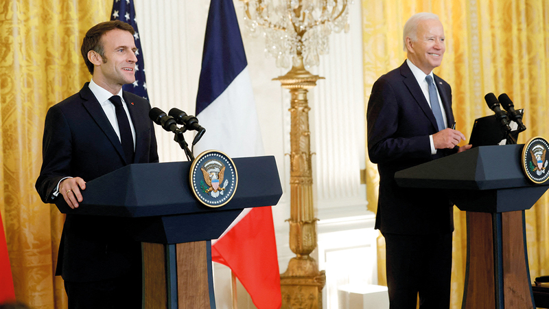 وكان ماكرون قد قال في البيت الأبيض في ديسمبر الماضي: «إنه يجب أن نكون أخوة في السلاح بالنسبة لأوكرانيا»، ولكن تصريحاته الآن تعني أنه يتعيّن أن تتصرف أميركا بمفردها بالنسبة للصين.