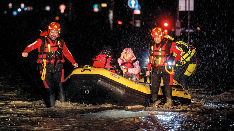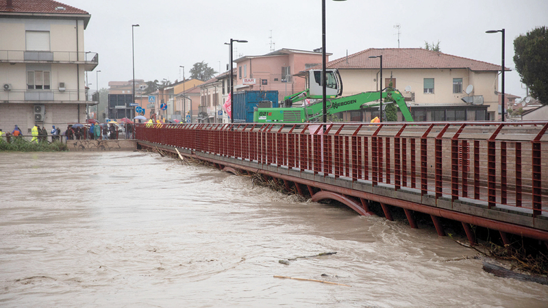 أدت الفيضانات العارمة بعد يومين من سقوط أمطار غزيرة في منطقتي إيميليا-روماجنا وماركي شمال إيطاليا إلى سقوط قتلى وحدوث أضرار، على طول ساحل البحر الأدرياتيكي في البلاد. وذكرت وسائل إعلام إيطالية، أمس، أن المنطقة الساحلية تعرضت لعواصف شديدة منذ الثلاثاء، ما أودى بحياة ثلاثة أشخاص. وغرق رجل كان يقيم في الطابق الأرضي من منزله، وهناك أيضاً تقارير عن أشخاص مفقودين. وذكرت خدمة الإطفاء الإيطالية أنها نشرت 400 رجل إطفاء واستجابت لـ600 مكالمة منذ صباح الثلاثاء.