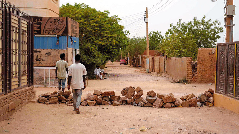 أحد المتاريس التي تعيق حركة الناس في شوارع أم درمان. أ.ف.ب