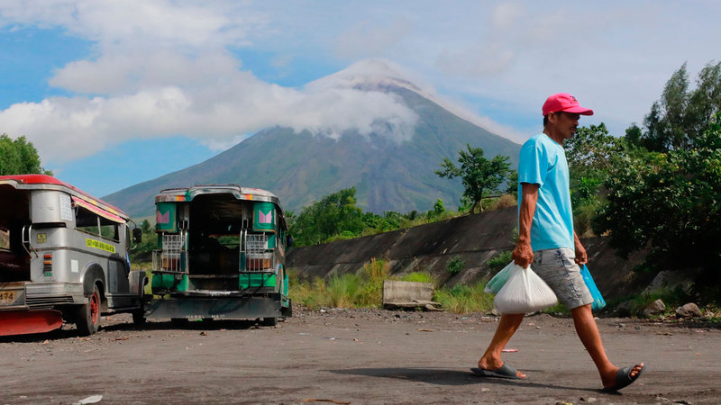 بداية ثوران بركان «مايون» في مقاطعة ألباي الفلبينية. وبينما تتطاير الحمم من الفوهة يخشى السكان ثورة قوية للبركان. إي.بي.إيه