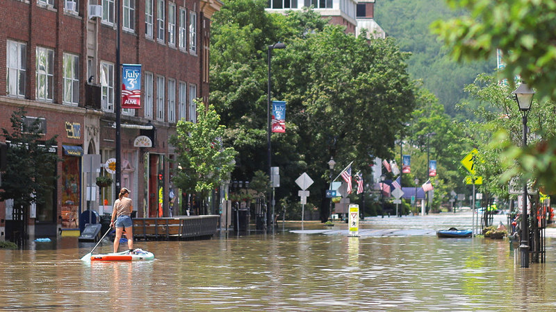وشهد شمال شرق الولايات المتحدة بغالبيته، بما في ذلك نيويورك ونيوجيرسي وكونيتيكت وبنسلفانيا وماساتشوستس وفيرمونت، هطول أمطار غزيرة، الأحد والإثنين، ما أدى إلى فيضانات تسببت في قطع جسور وطرق. وبحلول ظهر الثلاثاء، كان قد تم إنقاذ أكثر من 100 شخص كانوا محاصرين في سيارات وبيوت في فيرمونت، وفق ما أعلن مسؤولون.