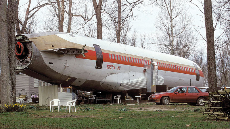 بعد أن فقدت منزلها في حريق عام 1995، خطرت لجو آن أوسيري فكرة غريبة تتمثل في العيش في طائرة. اشترت طائرة بوينغ 727 قديمة، ونقلتها إلى قطعة أرض كانت تمتلكها، وأمضت ستة أشهر في تجديدها، حيث قامت بمعظم العمل بنفسها. وفي النهاية، أصبح لديها منزل يعمل بكامل طاقته، مع مساحة معيشة تزيد على 1500 قدم مربعة، وثلاث غرف نوم، وحمامين، وحتى حوض استحمام ساخن في قمرة القيادة. كل ذلك بأقل من 30 ألف دولار.