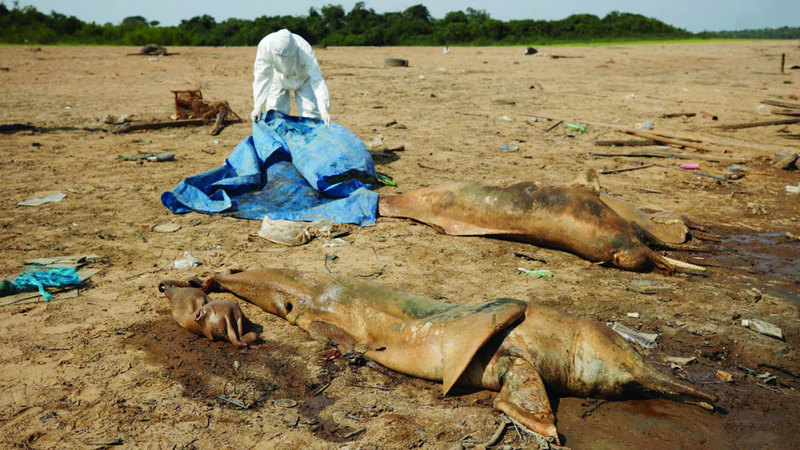 وعانت البرازيل - وهي أكبر دولة مساحة في أميركا اللاتينية - حرارة مرتفعة غير مسبوقة في الشتاء، حيث تجاوزت الحرارة 41 درجة، إضافة إلى حالات جفاف شديدة في غابات الأمازون، حيث سجل نهر ريو نيغرو - وهو الرافد الغربي لنهر الأمازون - أدنى مستوى له منذ 120 عاماً من المراقبة، واندلعت الحرائق حول مدنية مانوس عاصمة ولاية الأمازون، ونفق نحو 100 دلفين من نوعية «باجي» النهرية، في مياه بحيرة «تيفي» الملوثة والساخنة التي جفّ معظمها.